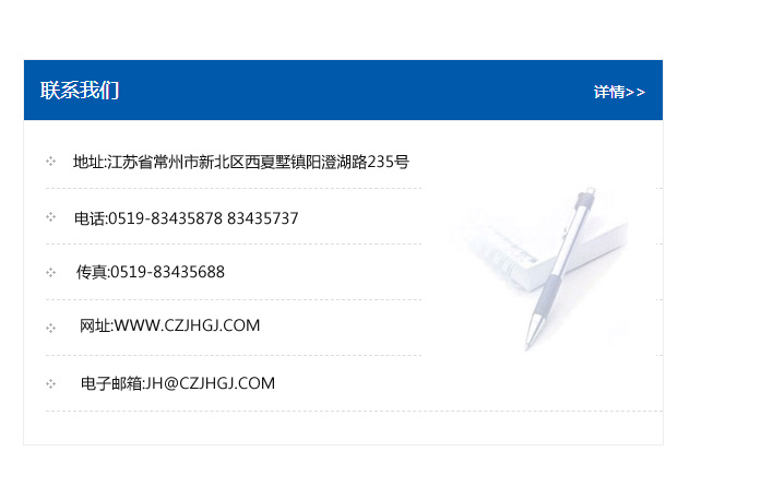 地址:常州市新北區友邦商務大廈1幢16、17層  電話:0519-85101652  傳真:0519-85112595  郵編:213022  網址:www.cz-jiayue_cn.sxnhcl.com  郵箱:xiajifengaa@163.com